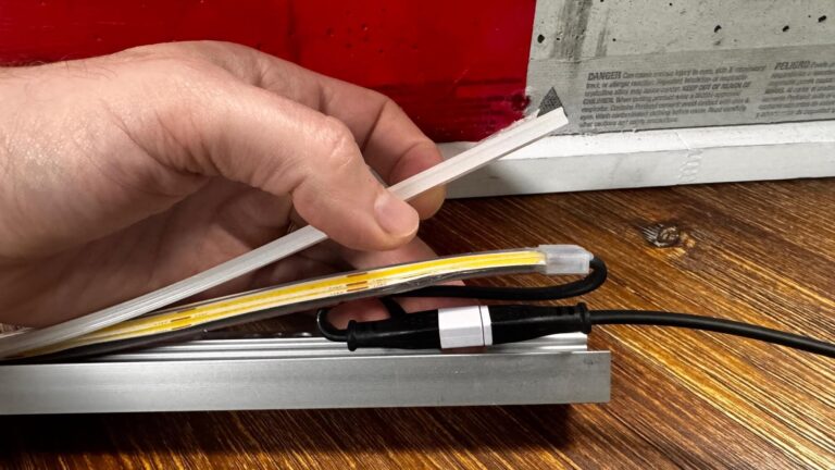 After your niche is dried in it’s time to install the channel that will hold the LED strip. The aluminum channel provided in our kits allows for you to install your shower niche lights flush with the top tile.